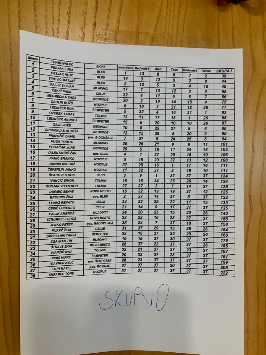MestoEKIPANovo mestoMedvode1BledCeljeMedvode2TolminSKUPAJ